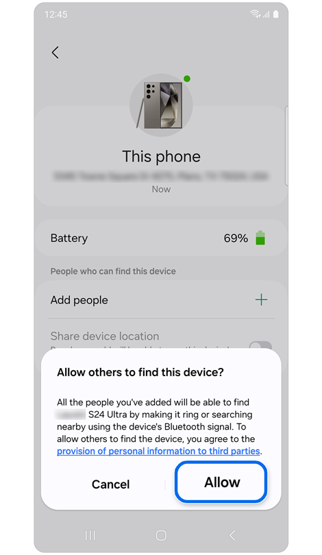The Samsung Find app gives you the ability to share your location with your family, contacts, and other Samsung account users. This feature can help with keeping track of family members, and assist users in finding shared devices.