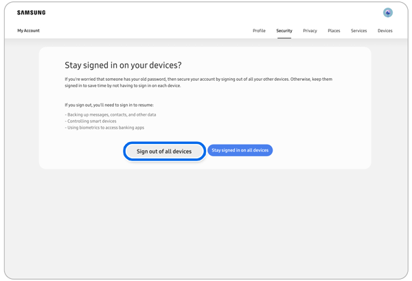 Note: All current and existing login sessions will be signed out when you select Sign out of all devices.