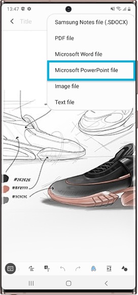 Now you can export notes to PPT files and hand-written notes into PPT slides as well. The formats that can be exported were Samsung Notes file, PDF, Word, Image, Text files, but the PPT conversion has been newly added. When you export Samsung Notes to PPT files, the note is converted to horizon type, the text is converted to text, and handwriting is converted to an image.