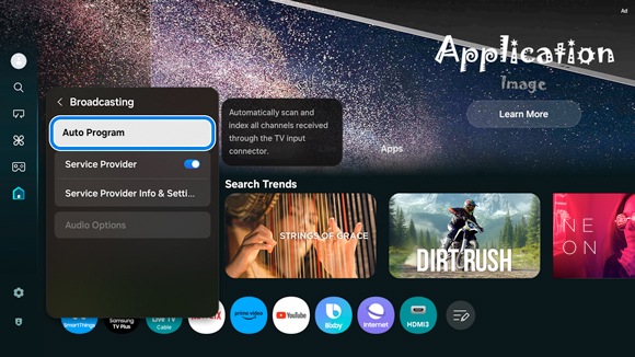 The Auto Program function on your 2025 Samsung Smart TV allows you to scan for and add new, local channels. You can use this function at any time if you’d like to add new content to your TV.