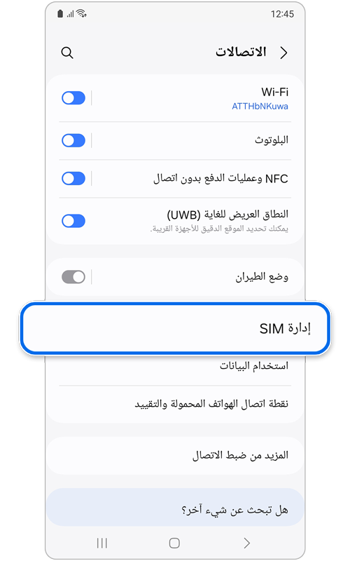 انتقل إلى الضبط > الاتصالات > إدارة SIM