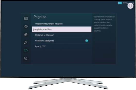 3. Pasirinkite „Įrenginio priežiūra“. (Jei jūsų televizoriuje nėra šio pasirinkimo, pereikite prie 4 žingsnio.)