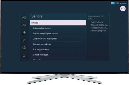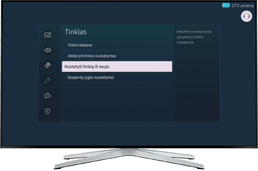 Jei išmanusis televizorius neprisijungia prie interneto, galite pabandyti atkurti tinklo parametrus. Atkūrę tinklo parametrus, turėsite vėl prisijungti prie interneto.