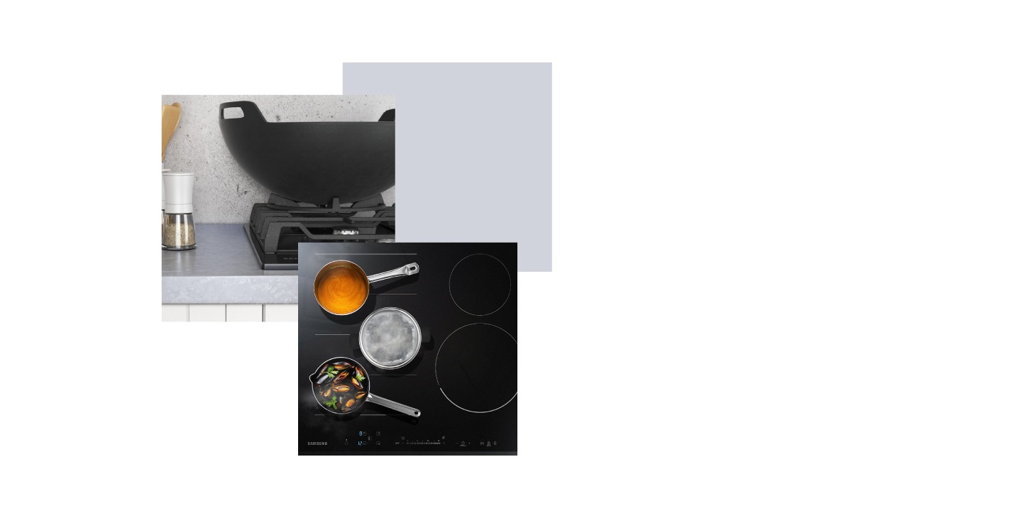 Samsung iebūvējamās indukcijas, keramiskās vai gāzes plīts virsmas ar intuitīvo vadību, viedajām drošības un Dual Flex funkcijām iekļaujas katras virtuves interjerā.