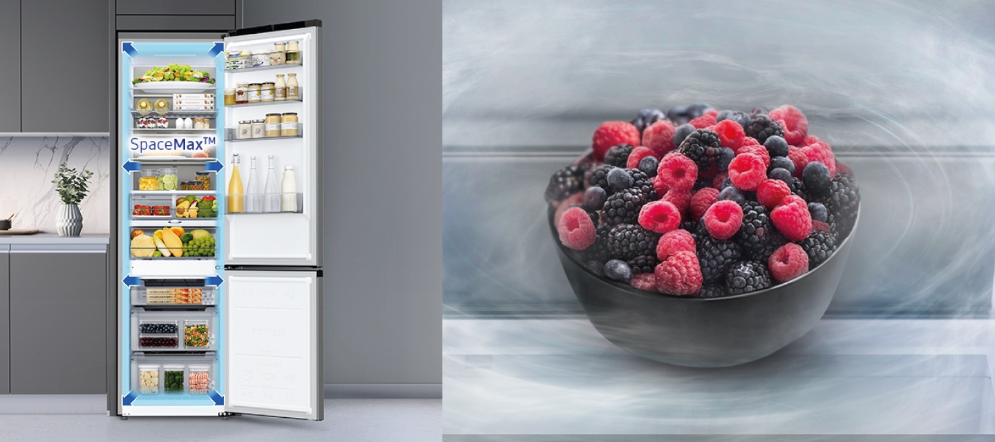 Uzglabājiet vairāk pārtikas īpaši lielajā 385 litru* ledusskapī ar standarta 600 mm dziļo dizainu, kas lieliski saplūdīs ar pārējām virtuves mēbelēm. SpaceMax™ tehnoloģija nodrošina augstas efektivitātes izolāciju, tāpēc sienas ir daudz plānākas.