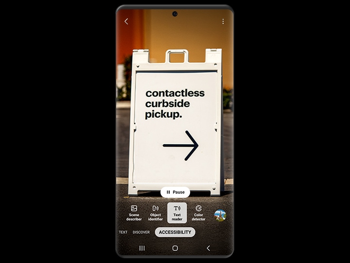 Bixby အမြင်သည် အမြင်အာရုံ ချို့ယွင်းသူများကို ကူညီပေးရန် ဝင်ရောက်အသုံးပြုနိုင်ရန် ရွေးချယ်ခွင့်များ ပေးအပ်ထားသည်။ အလွယ် တပ်ဆင်နိုင်ပြီး ရိုးရှင်းသည့် အသုံးပြုသည့် မျက်နှာပြင်နှင့် Bixby အမြင်သည် သူမြင်သမျှကို အသံဖြင့် ဖော်ပြနိုင်ပြီး သုံးစွဲသူအနီးအနားရှိ ကမ္ဘာကို အာရုံခံနိုင်ရန် ကူညီပေးနေပါသည်။