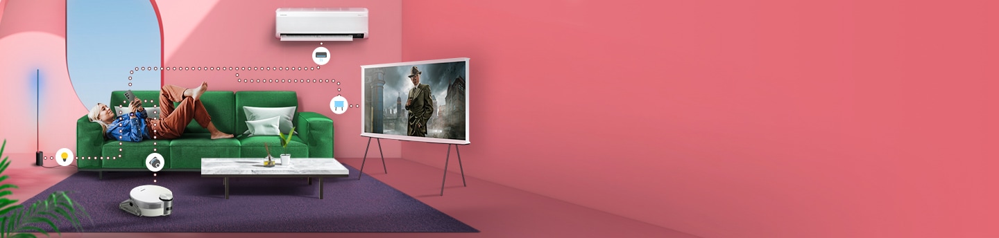 Энэ нь танай гэрт тав тух тайван байдлыг авчирна.Ухаалаг төхөөрөмжүүдээ холбож, дан ганц, ашиглахад хялбар апп-аар гэр орноо хүссэнээрээ удирдах боломжтой. SmartThings нь таныг гэрийн ажлаас чөлөөлөх тул та хамгийн чухал гэсэн ажилдаа анхаарлаа хандуулах боломжтой болно. Matter болон өөр бусад олон төрлийн төхөөрөмжтэй тохирдог.