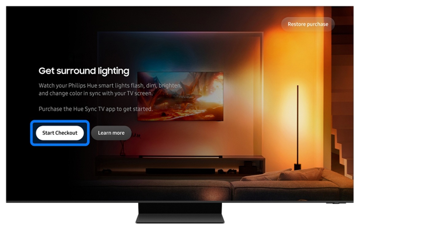 - Samsung ТВ дээрх ажиллах Philips Hue Sync аппликэйшний ажиллагаа улс, бүс эсвэл төхөөрөмжөөс хамаарч өөр байж болзошгүй. Samsung ТВ дээр Philips Hue Sync аппликэйшнийг ашиглахын тулд тав хүртэлх жилээр захиалга хийж, төлбөр төлөх шаардлагатай. Заасан хугацаа өнгөрсний дараа аппликэйшн хөгжүүлэгч апдэйт хийх бүхий л хугацаанд апп-ыг ашиглах боломжтой болно.