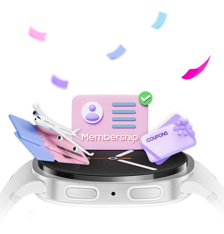Incluso con las manos llenas, puedes acceder fácilmente a tus tarjetas de membresía, cupones y pases de abordar desde tu Galaxy Watch. Ver códigos QR, códigos de barras e información detallada sin necesidad de buscar tu teléfono; lo que necesitas está justo en tu muñeca.3