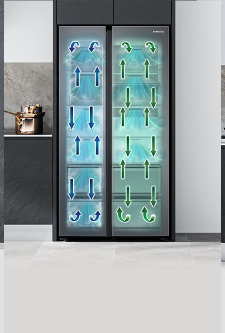 Los refrigeradores French Door y Side-by-Side combinan un diseño elegante con funciones inteligentes para ayudarte a hacer todo, desde planificar las comidas y reproducir música hasta reducir los residuos y mantener los alimentos frescos durante más tiempo.