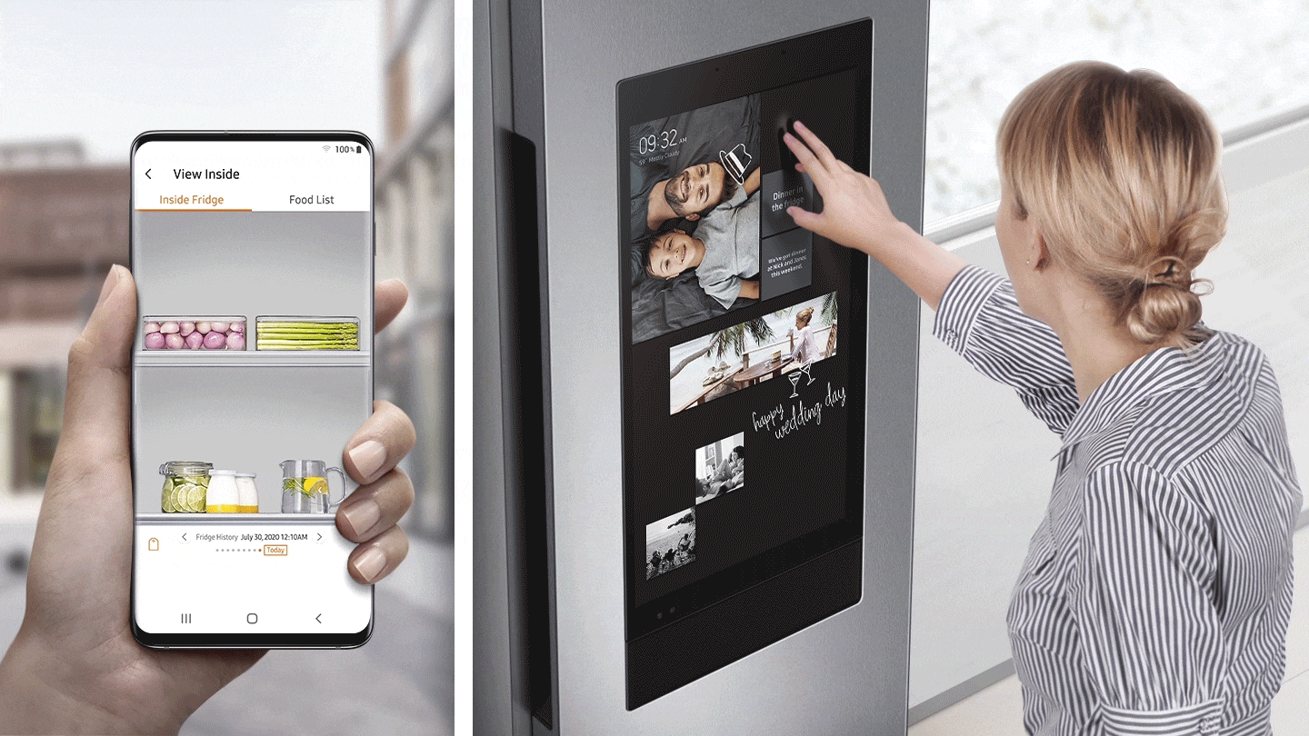 Mira lo que hay en tu refrigerador, en cualquier momento y en cualquier lugar, desde tu smartphone. O accede rápidamente a "View Inside" deslizando hacia arriba desde de la pantalla de inicio. La cámara interna View Inside muestra todo lo que hay en el interior. También etiqueta las fechas de caducidad de los alimentos y te permite crear una lista de compras, notas de alimentos o recordatorios.