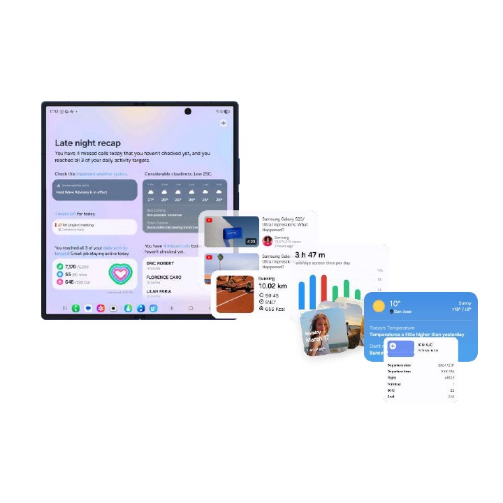 Imagina que tu teléfono pudiera prepararte para tu jornada laboral con la información y los recordatorios que necesitas de un vistazo. Eso es precisamente lo que hace Now Brief. Y con dos pantallas, puedes decidir cómo quieres mantenerte al día. Consulta rápidamente tus citas del calendario, tareas pendientes, el tiempo y más, ya sea en la pantalla exterior o desplegada para una vista más amplia.