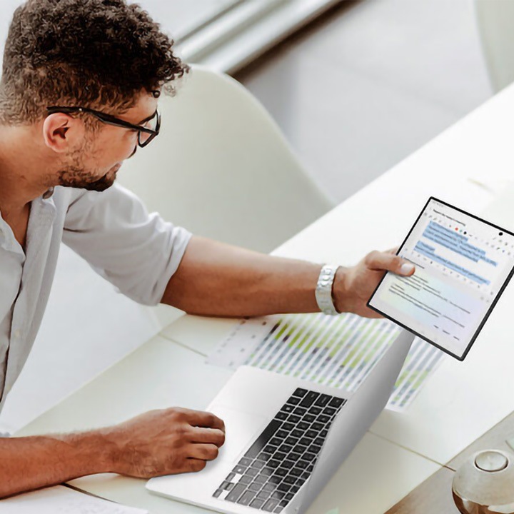 Los dispositivos plegables están abriendo nuevas y poderosas formas de trabajar sobre la marcha. Más grandes, pero más delgados que nunca, el último Samsung Galaxy Z Fold7 te permite trabajar como lo harías en un teléfono tradicional cuando está cerrado y disfrutar de todas las ventajas de una pantalla grande, similar a una tableta, cuando está abierto. El dispositivo está diseñado para facilitar el multitasking de manera fácil y fluida: en el trabajo, en casa y en cualquier lugar intermedio. Con el Galaxy Z Fold7, los emprendedores y líderes empresariales pueden llevar menos y hacer más.