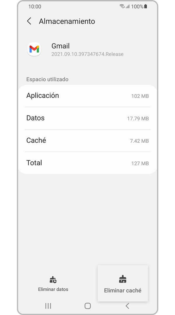 Utiliza Cuidado del dispositivo para borrar el caché de la aplicación de una vez.