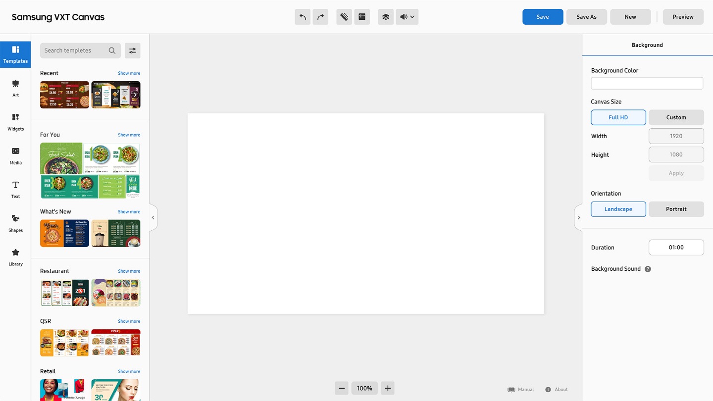 Using preconfigured templates in VXT Canvas, menuboards and promotion content can be quickly created to ensure customers receive the latest information. This content can be further enhanced with enchanting art content available in VXT Art, while Sync Play ensures alignment of all promotional messages with connected, alternating content across a full signage network with multiple displays.