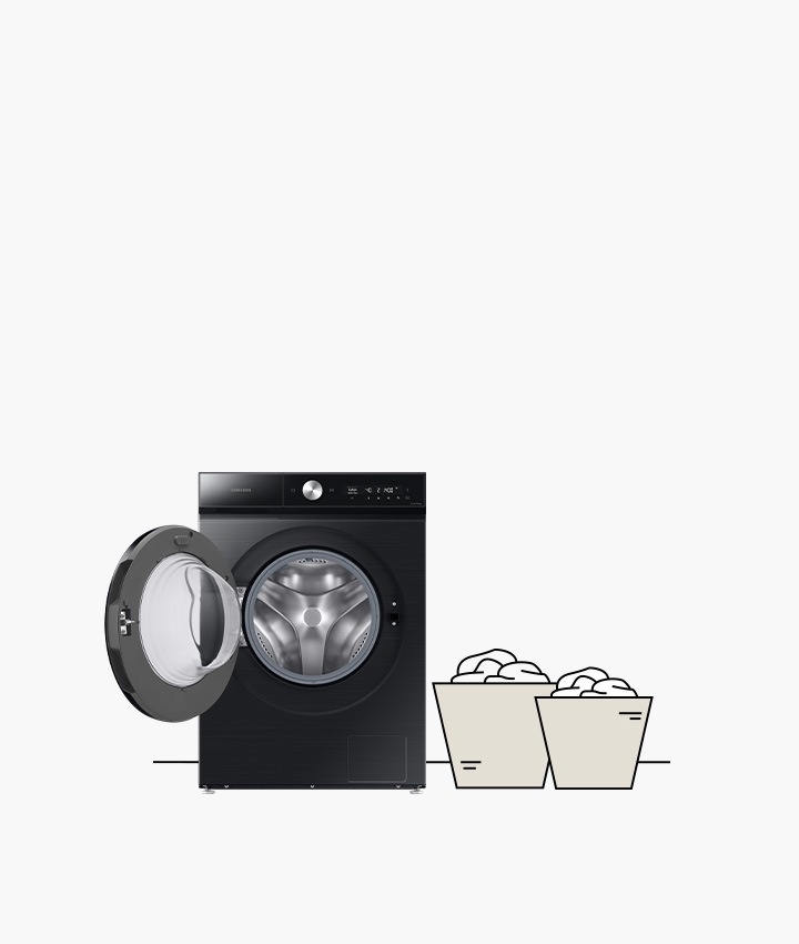 6. AI Wash holds detergent for up to 1 month’s washing, based on the average of 4 loads per week. May vary depending on the washing load and settings. Available on Android and IOS devices. A Wi Fi connection and a Samsung account are required. Mobile GUI images may vary by country, environment etc.
