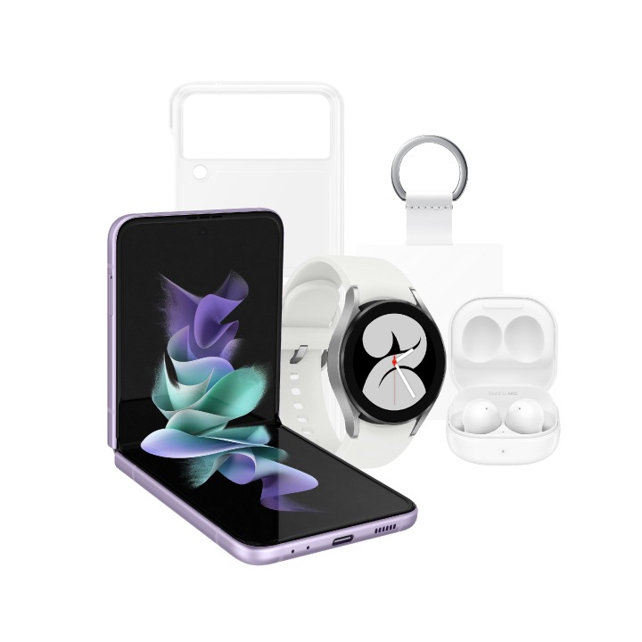 Galaxy Z Flip3 5G 256GB, Galaxy Watch4 40mm, Galaxy Buds2, Galaxy Z Flip3 Clear Cover with Ring