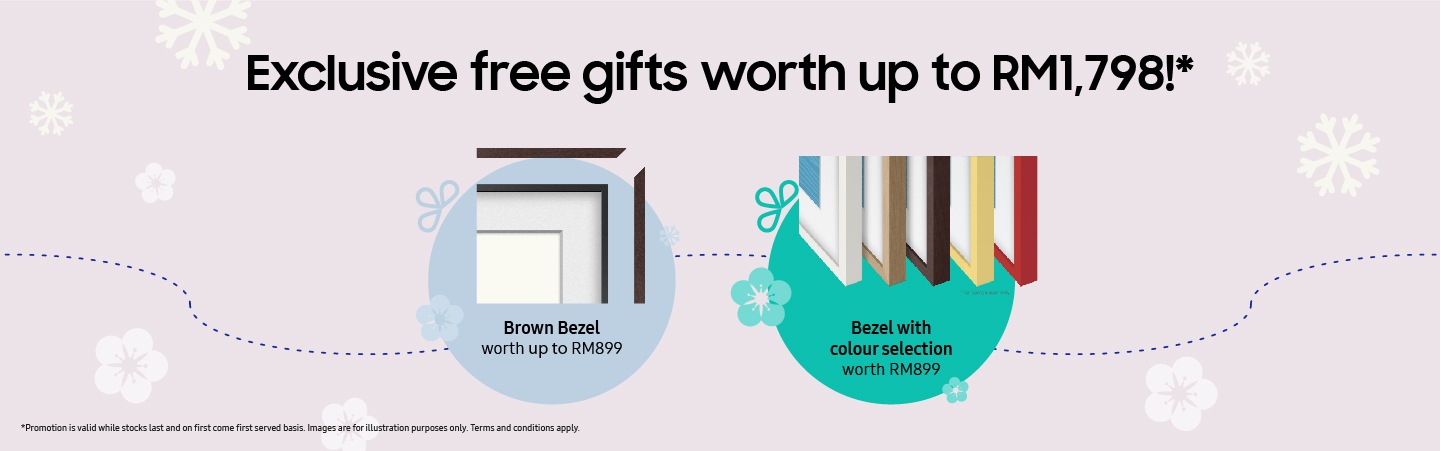 Free Gift: 85" Modern Bezel Brown + Additional bezel of your choice worth RM 1,798 + 3 Month Art Store Access