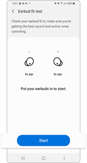 Step 3. Wear both earbuds in your ears, and then tap Start. The earbuds will emit a sound and the test will begin.