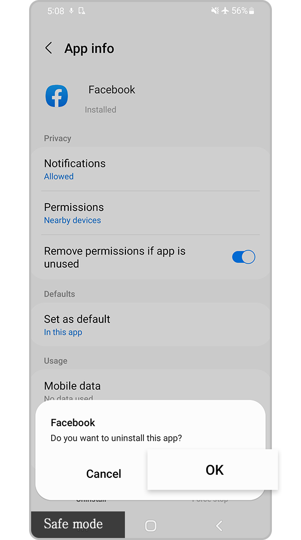 While very unlikely, if your device is affected by malware you can remove the malicious app in Safe mode. All third-party apps are disabled when in Safe mode, so it may be easier to delete the problematic app.