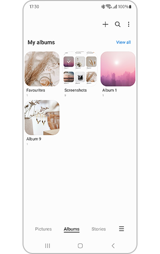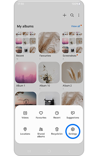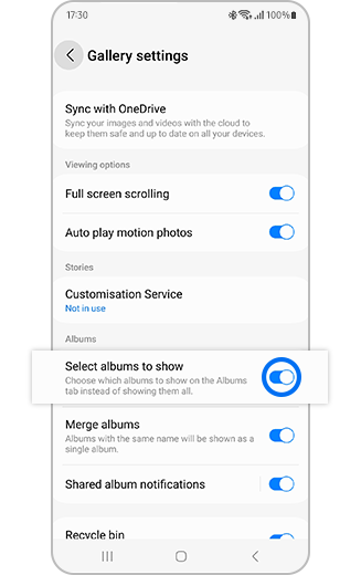 Photos saved on the phone are automatically added and displayed in the Gallery app. The select albums to show feature lets you view only the albums you want. This is supported in Android 13 or higher.