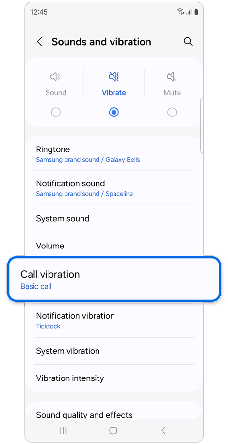 Check the call vibration settings