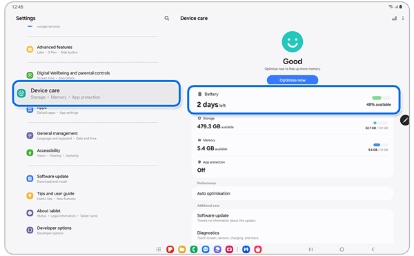 Step 1. Open Settings > Select Device care > Tap Battery.