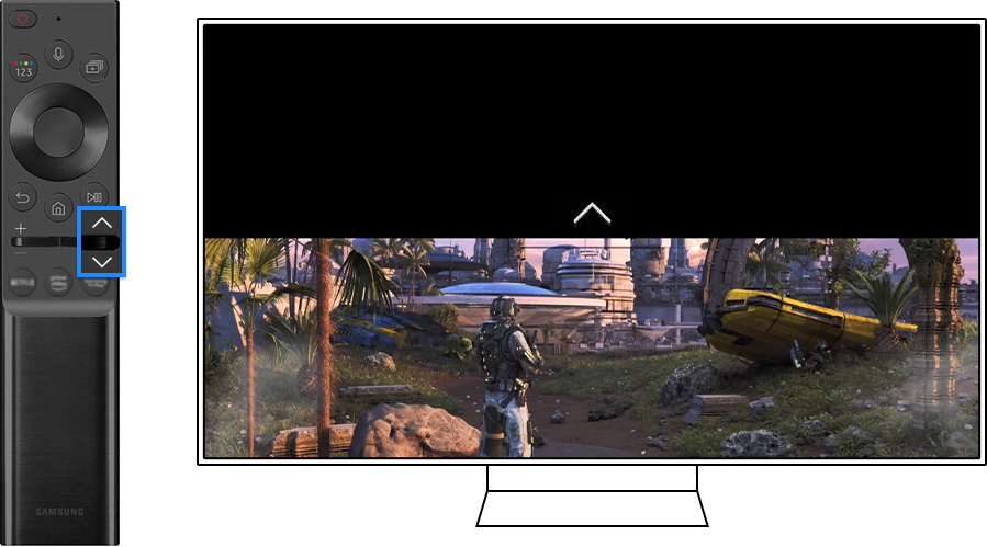 When using Ultra wide (21:9 or 32:9), you can press the Up/Down directional button on the TV’s remote control to move the screen up or down.