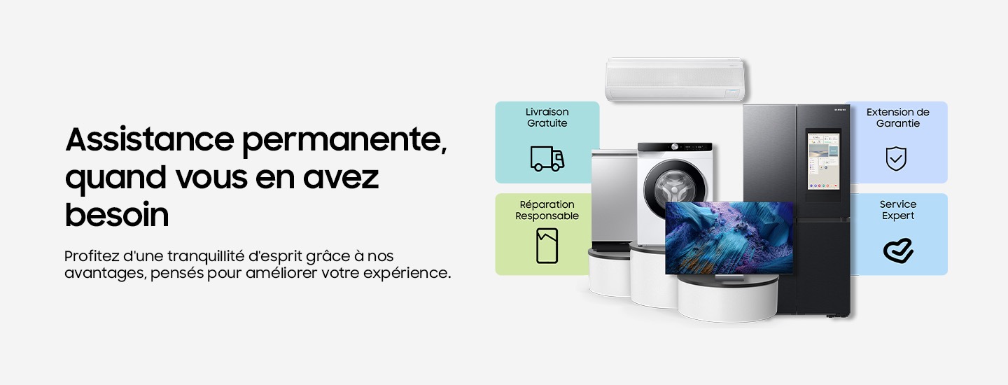 Découvrez en un coup d'œil les services complets de Samsung, assurés par des experts Samsung.