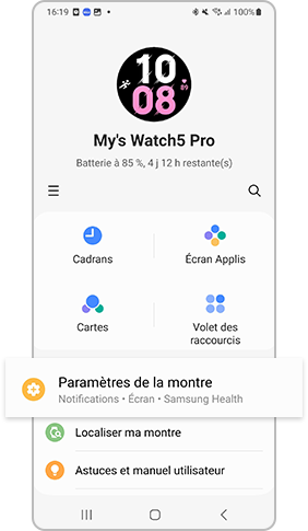 - Les écrans et réglages disponibles peuvent varier en fonction de la version du logiciel du modèle de smartphone et de montre.