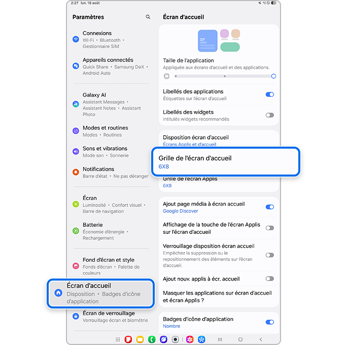 Comment définir des dispositions d'Écran d'accueil distinctes pour les modes portrait et paysage sur votre tablette Galaxy
