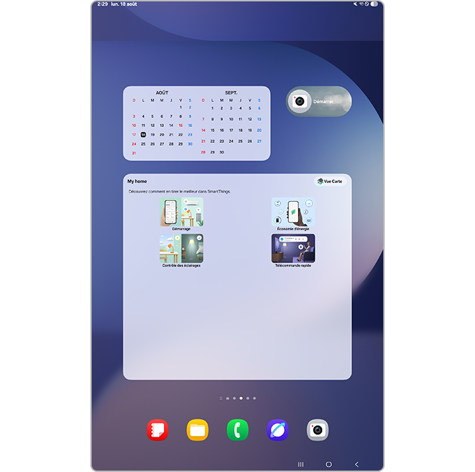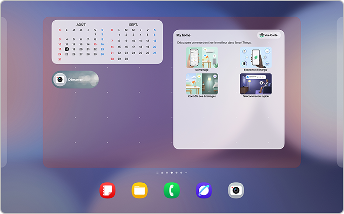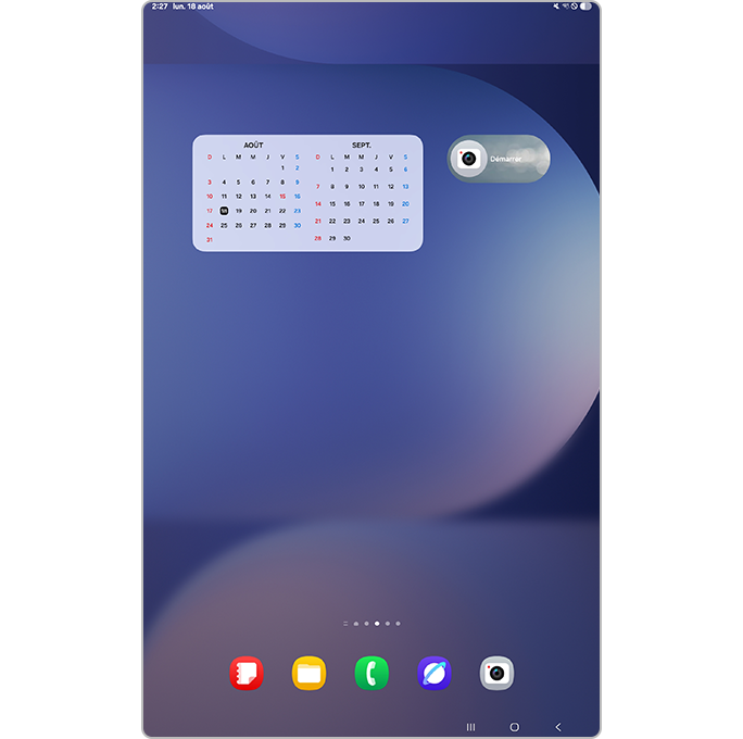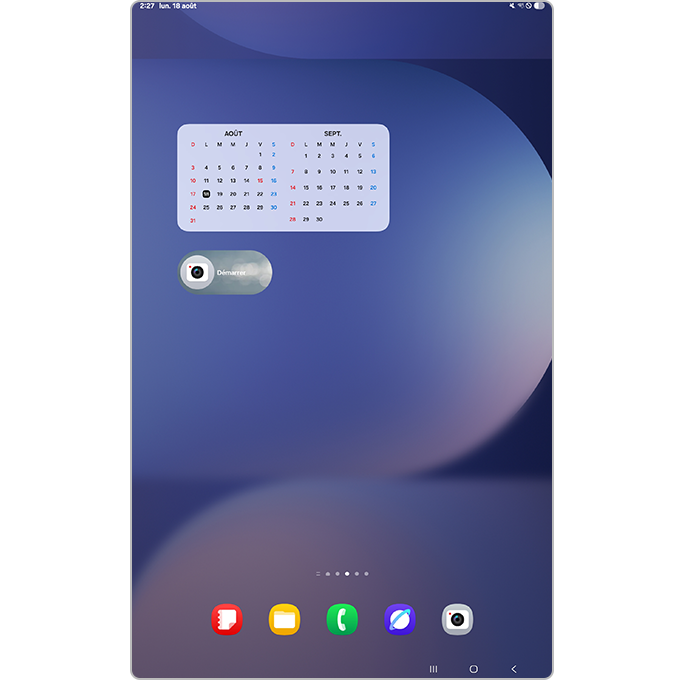L’Écran d'accueil de votre tablette Galaxy est l’endroit où des applications, des widgets et des raccourcis sont organisés. Il utilise une grille pour déterminer le nombre d’éléments par ligne et par colonne.
