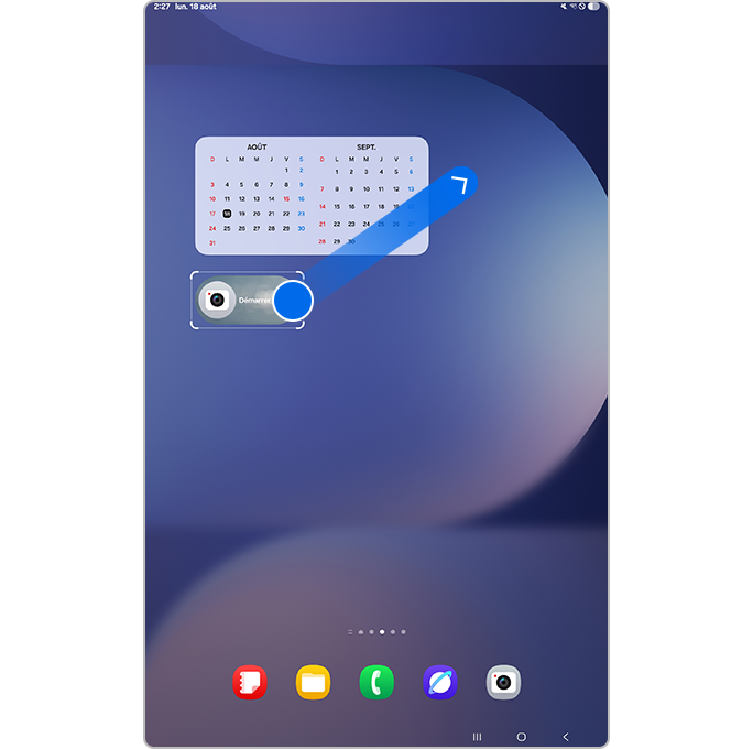 Réponse 1. Les applications et les widgets doivent exister à la fois en mode paysage et en mode portrait. Bien que la taille et la position de chaque élément puissent être ajustées séparément dans chaque orientation, un widget ne sera pas ajouté s'il dépasse l'espace disponible dans l’une ou l’autre disposition, même si de l'espace semble disponible dans un mode. Planifiez soigneusement la taille des widgets afin de vous assurer qu'ils s'adaptent aux deux dispositions.