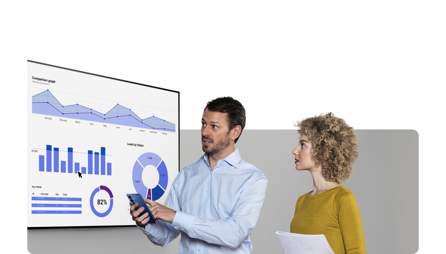 Maak moeiteloos verbinding, presenteer naadloos. Tik op de DeX-knop op je Galaxy-apparaat om verbinding te maken met een Smart TV. Nu ben je helemaal klaar om een pakkende presentatie te geven.