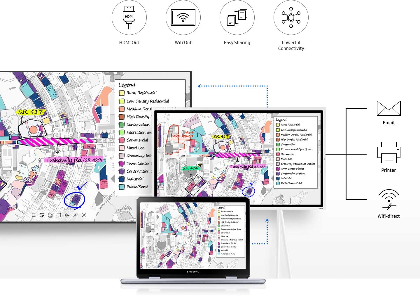 De geavanceerde visuele displays van Samsung werken perfect samen met de audio- en videotechnologieën van Cisco en bieden bedrijven aanpasbare opties. De technologieën vormen zich naar de specificaties van elke vergaderruimte, inclusief de verlichtingsomgeving en het aantal betrokken deelnemers.