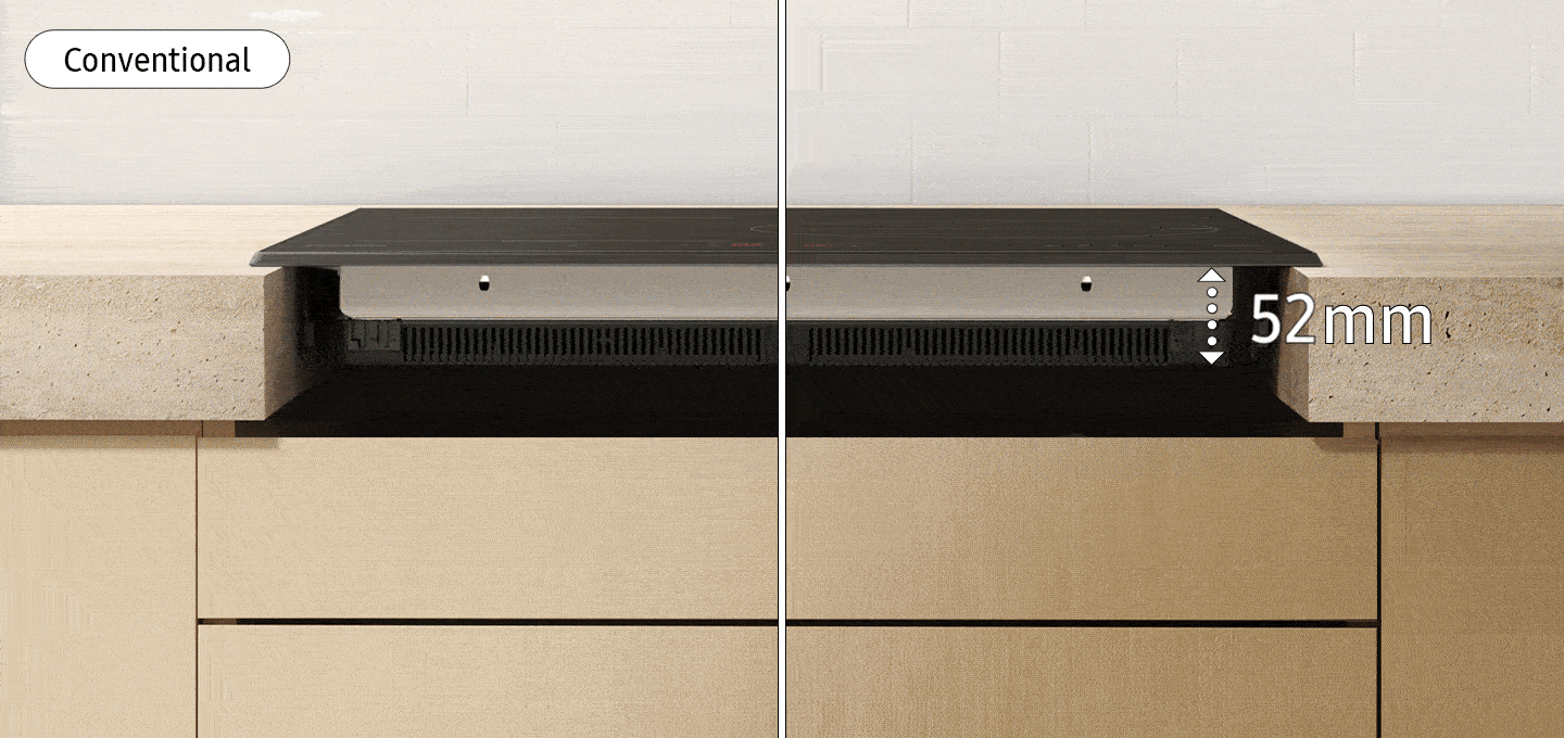 Breid je keuken uit met handige extra bergruimte*. Het slanke ontwerp van de kookplaat combineert goed met verschillende werkbladen in verschillende diktes. Het betekent ook dat er meer ruimte is voor een grotere opberglade. En het is gemakkelijker te installeren, zodat je tijd en kosten bespaart. 6
