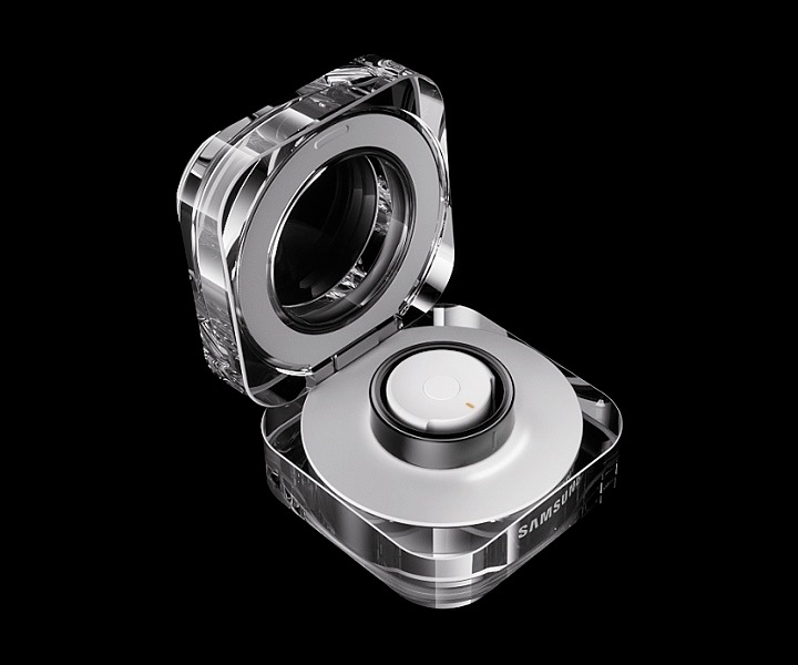 Zelfs als hij in zijn kristalheldere oplaadcase ligt, is de Galaxy Ring een lust voor het oog. Het zacht gloeiende licht rond de multifunctionele knop geeft het laadniveau van de batterij aan. De oplaadcase kan ook draadloos worden opgeladen, dus stop je Galaxy Ring veilig in de oplaadcase als je onderweg bent en leg deze op een draadloze oplaadpad voor gemakkelijk opladen. , ,