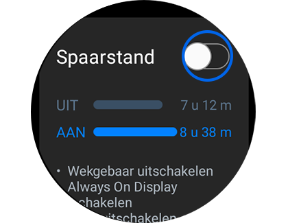 Verleng de levensduur van de batterij van uw Galaxy watch door de spaarstand in te schakelen.