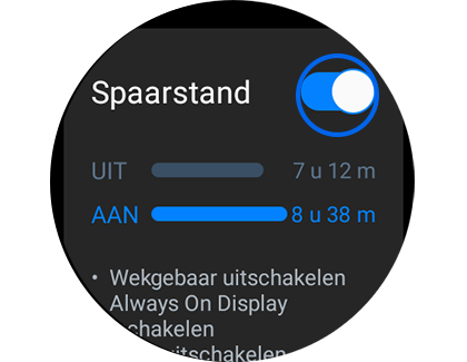 Energiespaarstand inschakelen: (weergave op watch)