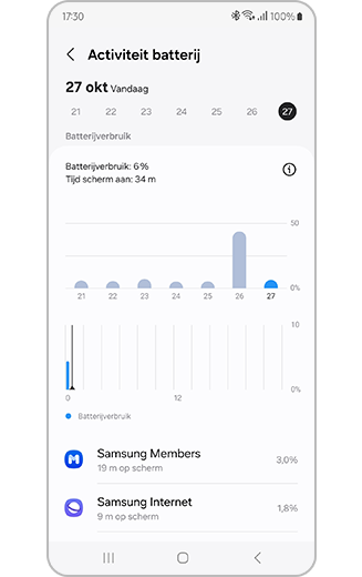 Controleer wat de levensduur van de batterij beïnvloedt in App History