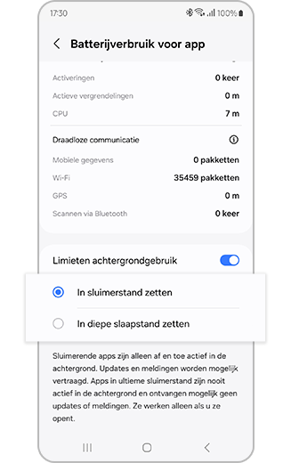 Zet zelden gebruikte apps in de slaapstand of in diepe slaap