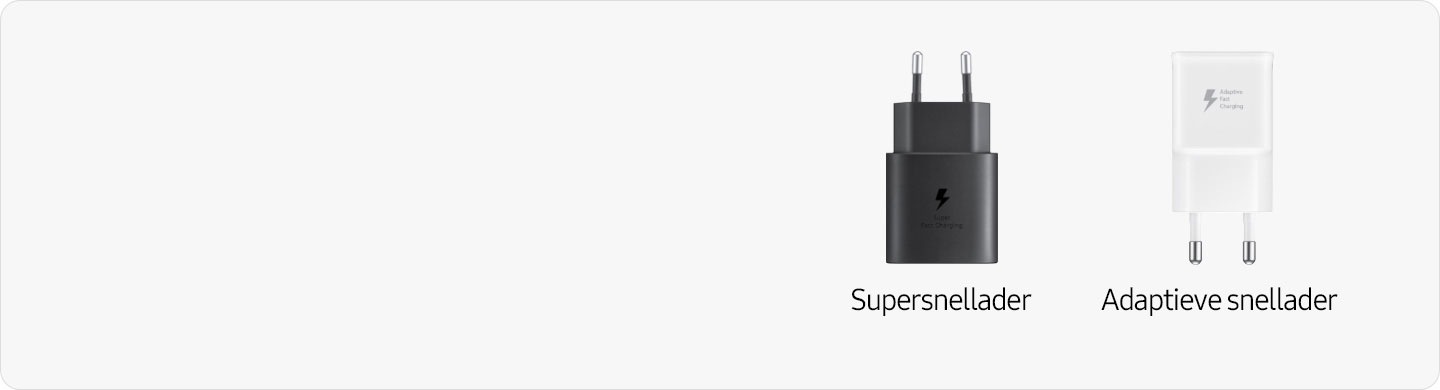- Voor snel opladen 2.0 is een adapter nodig die een vermogen van meer dan 25 W ondersteunt (max. 15 W oplaadvermogen)