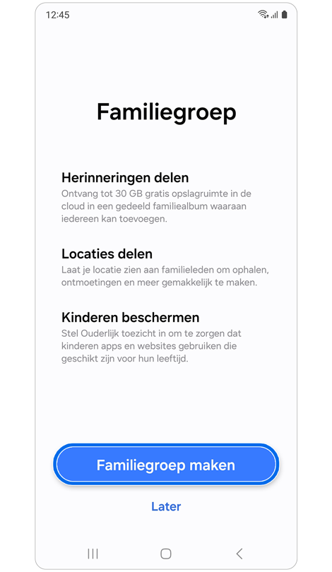 Het maken van familiegroepen wordt ondersteund in One UI 5.1 en later in de VS en One UI 6.1 en later in Europa.