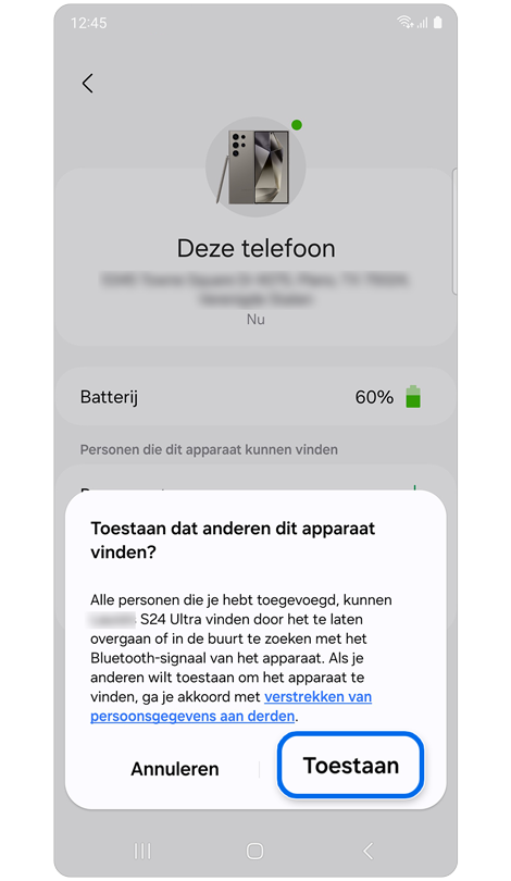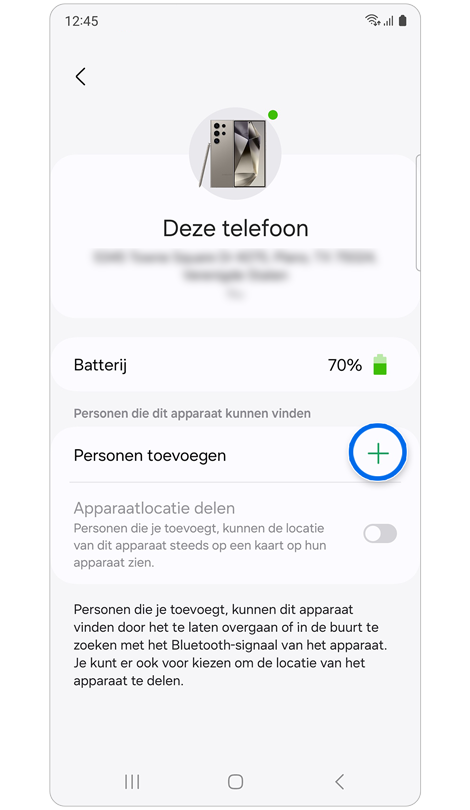 Je kunt aangeven met welke familieleden je jouw apparaat wilt delen. Als je de optie voor apparaatlocatie delen inschakelt, kunnen ze de locatie van jouw apparaat zien.