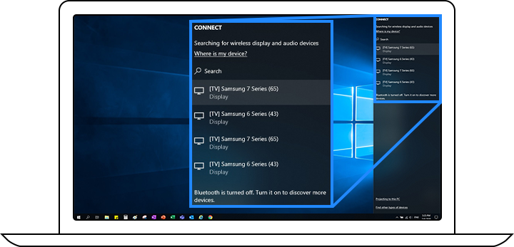Samsung tv is ook uitgerust met wifi Direct, dat naadloze schermdeling tussen tv's en pc's mogelijk maakt. Om het scherm van je pc op je tv te delen, of omgekeerd, gebruikt je de instructies op het scherm om je instelling aan te passen en de tv met een computer te verbinden via wifi.