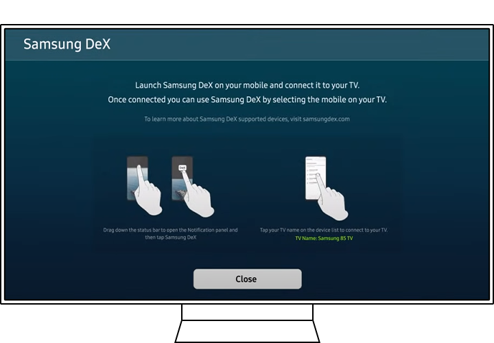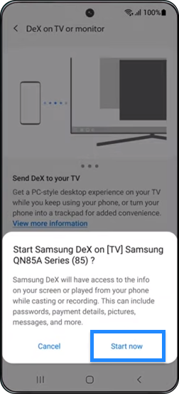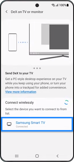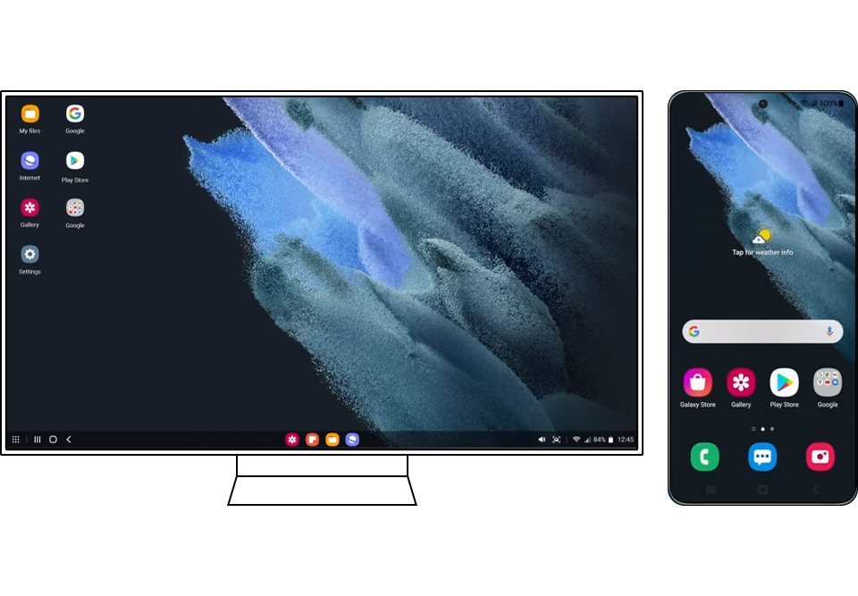 Je kunt je mobiel als pc gebruiken met Samsung DeX op je grote scherm. Galaxy-apparaten bieden Wireless DeX waarmee je je mobiele telefoon via wifi kunt verbinden met een Smart-tv. En je kunt Samsung Dex opvragen wanneer je maar wilt.