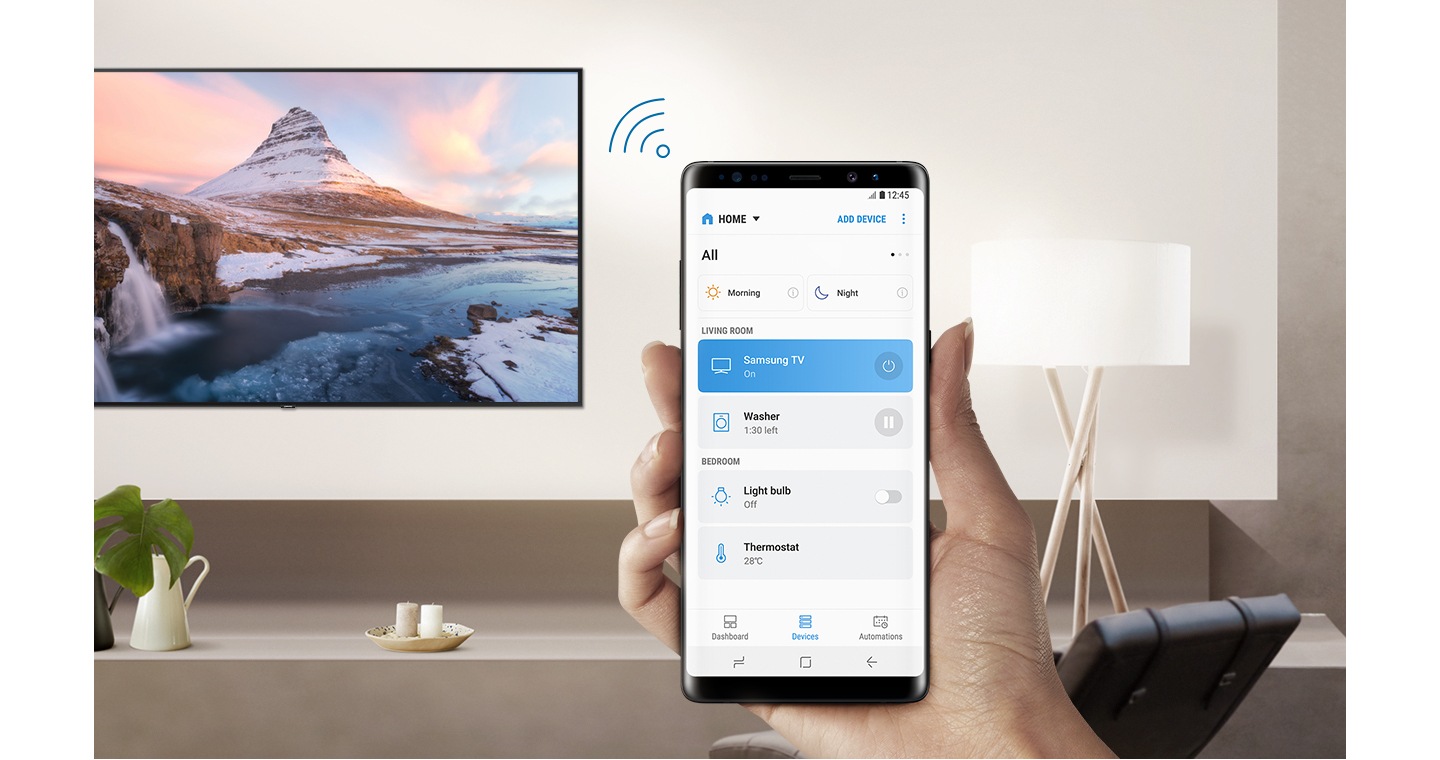 De SmartThings-app is het enige wat je nodig hebt om je smartphone met je TV te verbinden. Zo eenvoudig is het.