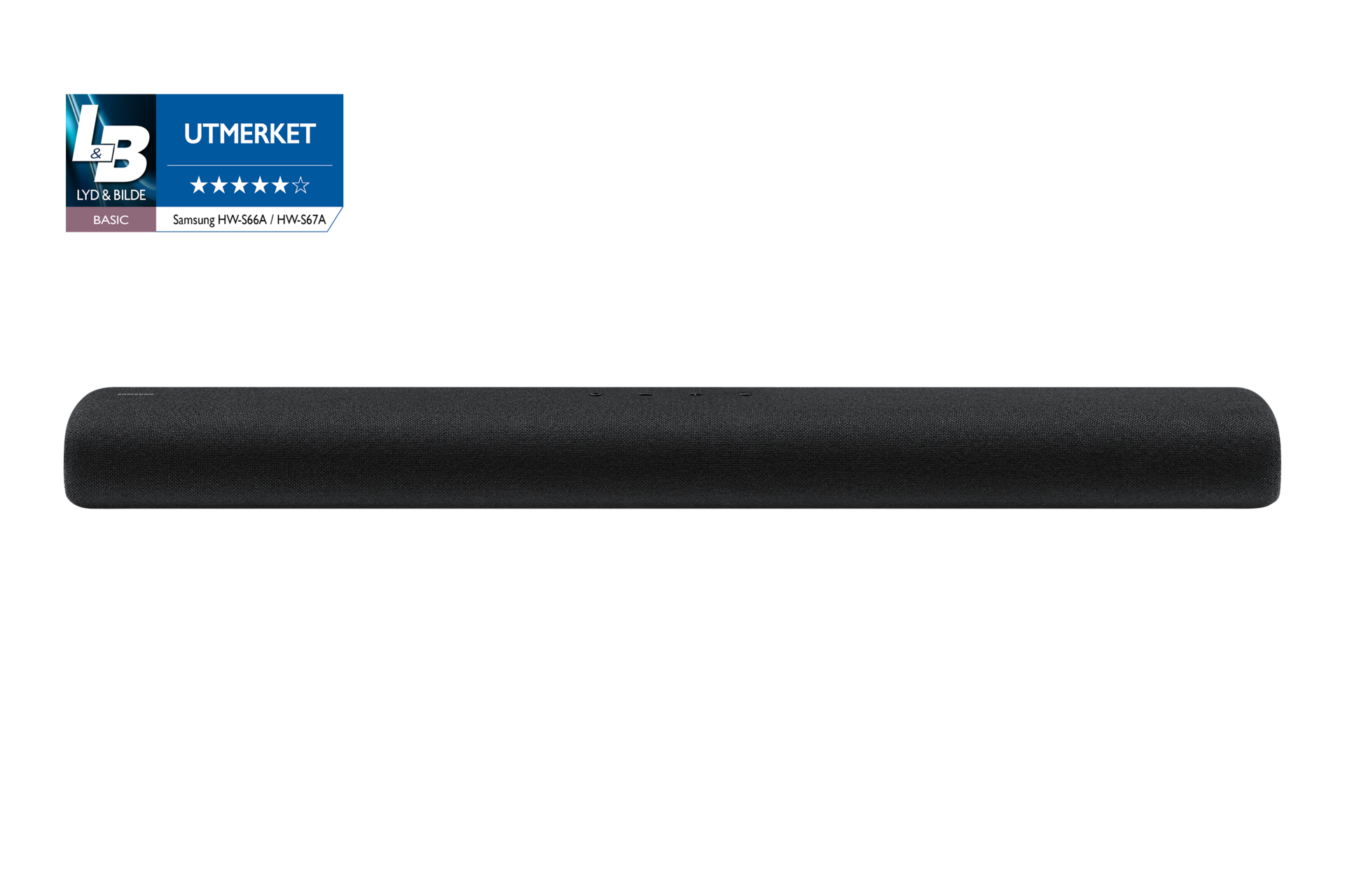 Hør hver eneste nyanse, enten det gjelder musikk eller film. Soundbar S66A er utstyrt med to sidehøyttalere og Samsung Acoustic Beam-teknologi som fyller hele rommet med dynamisk lyd.