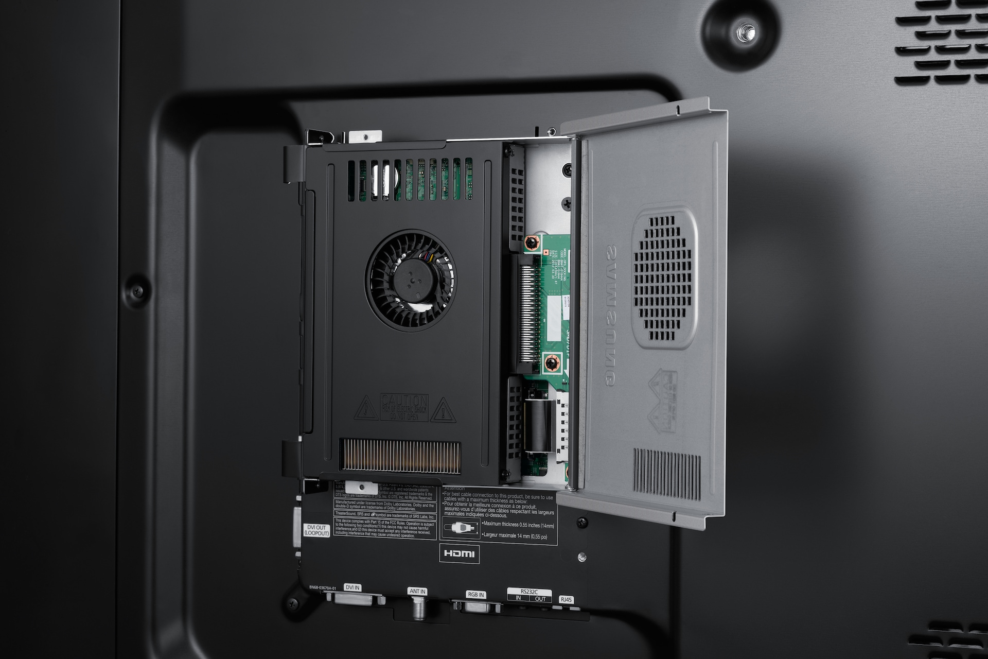 Samsungs Plug-in-modul representerer det ypperste innen skjemkomfort. Den tynne og lette PC-modulen kobles ganske enkelt direkte inn i LFD-skjermen, uten behov for tilkoblingskabler. Ved å overføre strøm og signaler internt unngår man ekstra PC-er og rot. Det er ikke nødvendig å bruke tunge stasjonære eller bærbare PC-er, og brukerne sparer tid og krefter samtidig som du reduserer risikoen for skader.