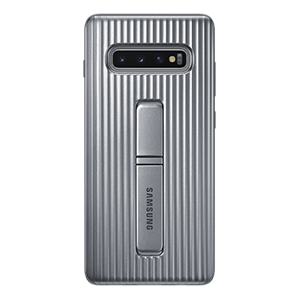 Beskytt telefonen mot skade. Protective Standing Cover omslutter Galaxy S10e, S10 eller S10+ med slitesterke materialer og gir glimrende beskyttelse som hindrer at telefonen blir skadet hvis du mister den i bakken.
